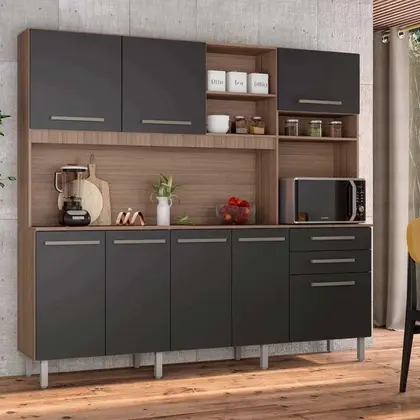Com ótimos compartimentos internos para organizar seus utensílios, possui oito portas e duas gavetas para melhor organização e também conta com uma estrutura tradicional que irá se encaixar perfeitamente no ambiente e combinará com outros móveis.Gavetas com corrediças metálicas