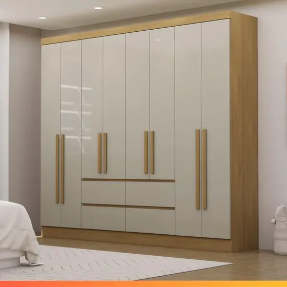 O Guarda Roupas de Casal Turim é a escolha ideal para quem busca praticidade e organização no dia a dia. Com design moderno e funcional, ele conta com 8 portas que garantem amplo espaço interno, além de 4 gavetas espaçosas que facilitam a organização de roupas e acessórios. Seu cabideiro resistente é perfeito para roupas longas, mantendo tudo bem estruturado. O modelo ainda possui 6 prateleiras internas que oferecem praticidade no armazenamento e ajudam a deixar cada peça em seu devido lugar. Com estrutura durável e acabamento sofisticado, o Guarda-Roupas Turim une beleza e funcionalidade, trazendo mais elegância e organização para o quarto.